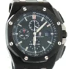Titanium case with a black rubber strap. Black ceramic bezel. Slate grey dial with silver-tone hands and index hour markers. Dial Type: Analog. Luminescent hands and markers. Date display at the 3 o’clock position. Chronograph – sub-dials displaying: three – 60 second, 30 minute and 12 hours. Audemars Piguet Calibre 3126 automatic movement with a 50-hour power reserve. Scratch resistant sapphire crystal. Screw down crown. Transparent case back. Case size: 44 mm. Case thickness: 14.4 mm. Round case shape. Water resistant at 100 meters / 330 feet. Functions: chronograph, date, hour, minute, second. Luxury watch style. Watch label: Swiss Made. Audemars Piguet Royal Oak Offshore Slate Grey Dial Automatic Mens Watch 26400IO.OO.A004CA.01