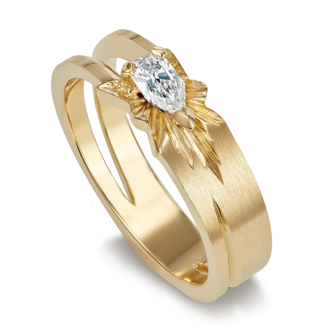 Representing the aftermath of a meteoric collision; the ‘Stephen Webster x Skydiamond Collision Band Ring’ is crafted in 18 carat Single Mine Origin Yellow Gold and set with one exclusive Meteoric cut Skydiamond (0.22ct).