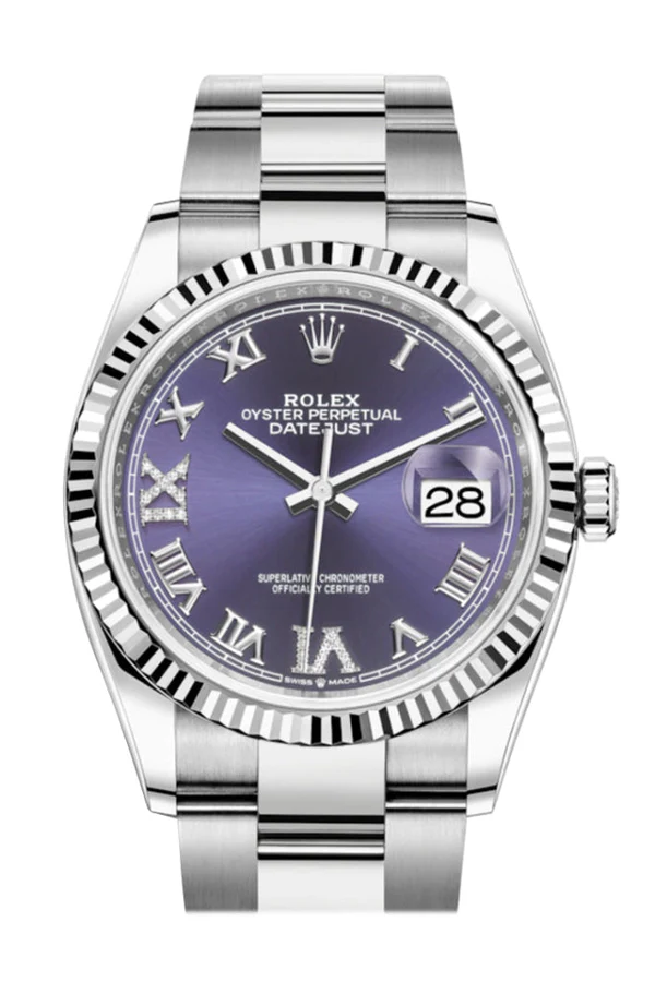 Rolex Datejust 36 Purple Roman VI and IX 24 Diamonds Dial Automatic